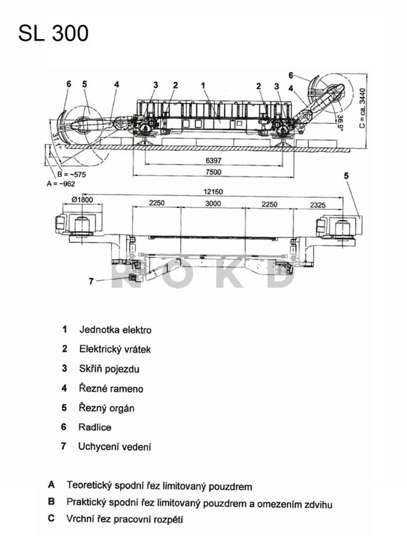 Výrobek fy Eickhoff. Pořízený v r. 2008, po provozu. Vyžaduje provedení generální opravy. Elektrozařízení pro napětí 3,3kV. Instalovaný výkon: 1138kW. Průměr rozpojovacích orgánů (Krummenauer) 1600mm, případně 1800mm. Kombajn je bez nahrnovacích radlic.